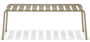 Banco de cuatro patas, realizado en lamas de aluminio.