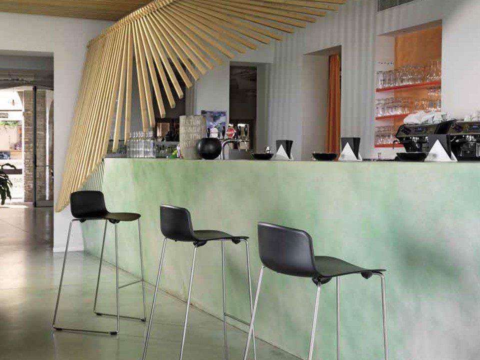 El diseño de Split 3 es muy versátil, gracias al sinfín de combinaciones de colores. El modelo de taburete es adecuado para contextos públicos como bares y restaurantes, en combinación con el asiento Split 1.