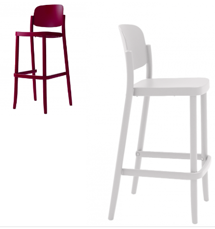 El taburete de bar PIAZZA 3 de polipropileno reforzado con fibra de vidrio, que forma parte de la gama diseñada por Jun Yasumoto para Colos, es una de las tres variantes propuestas. La altura del asiento se puede elegir entre 65 y 75 cm y cada variante está provista de reposapiés.