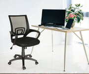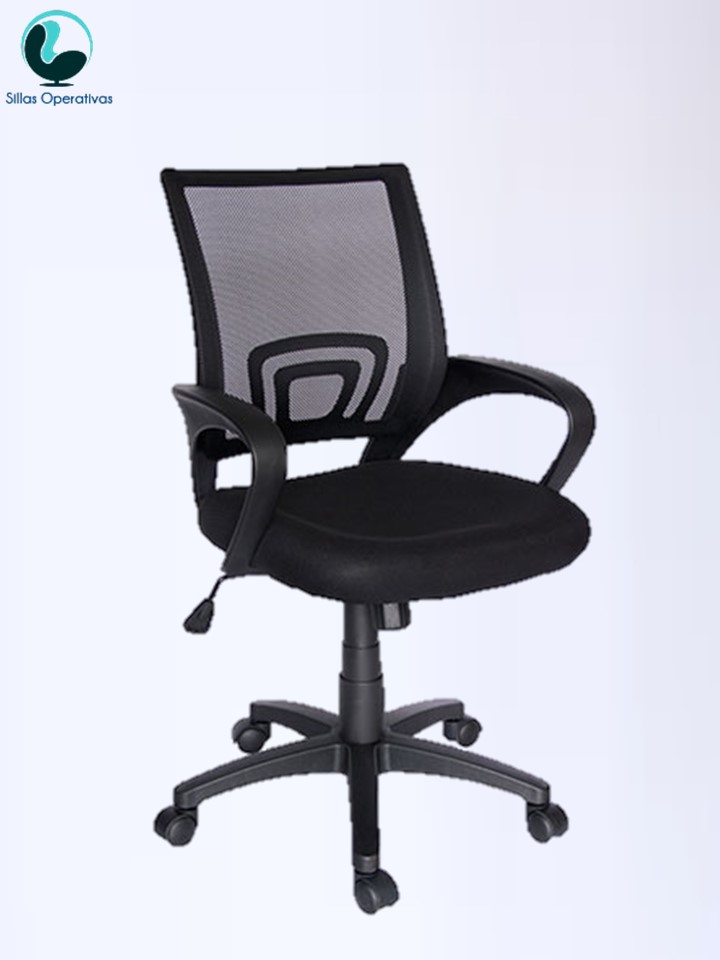 Silla Operativa con respaldo de malla y asiento de tela Microespacia, Sube , Baja y se Reclina,Estrella y rodajas negrasl