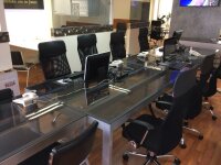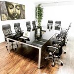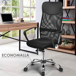 Sillon Ejecutivo, respaldo de malla alto, Asiento de tela microespacial, brazos futuristas, estrella cromada, rodajas negras