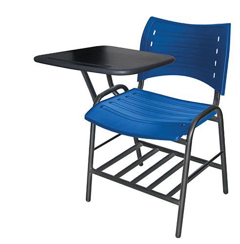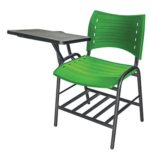 Estructura: de acero tubular ovalado de 30 x 15 mm, calibre 18; con acabado de pintura epóxica (electrostática) color negro mate. parrilla: en perfíl pulido redondo de acero en 3/16 "de diámetro. asiento y respaldo: en dos piezas en polipropileno de alta resistencia y duración, con diversas perforaciones en forma de óvalo. color: negro, gris, verde, rojo, azul o naranja.