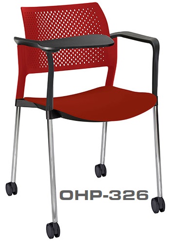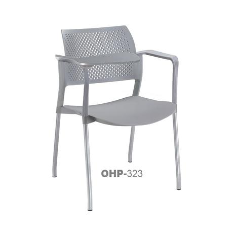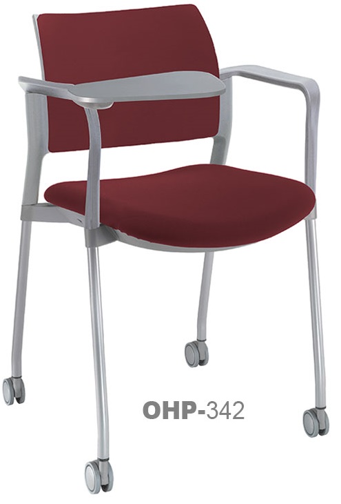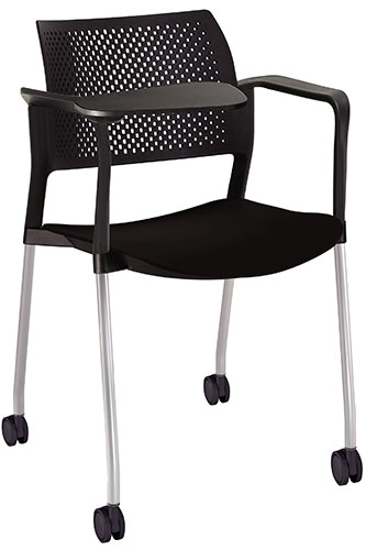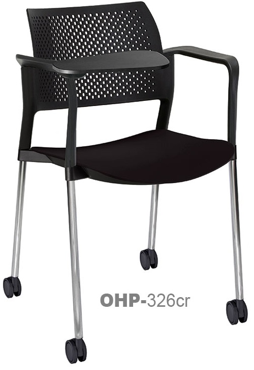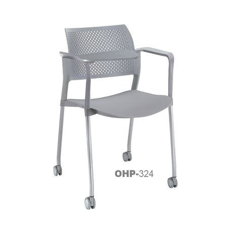estructura: de acero tubular de 7/8" de diámetro, calibre 14; color gris, con rodajas giratorias tipo dual en color negro, con descansabrazos de polipropileno en color negro y con paleta lateral abatible en color negro fijada al brazo mediante un dispositivo. respaldo: en polipropileno de alta densidad y alta resilencia. asiento: hule espuma de poliuretano inyectado flexible con densidad de 60 kgs/m3 con retardante a la flama y alta resilencia.