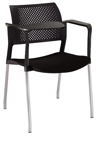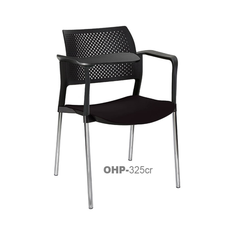 estructura: de acero tubular de 7/8" de diámetro, calibre 14; terminado en cromo, con descansabrazos de polipropileno en color negro y con paleta lateral abatible color negro fijada al brazo mediante un dispositivo. respaldo: en polipropileno de alta densidad y alta resilencia.
