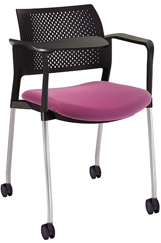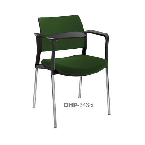 RESPALDO POLIPROPILENO ASIENTO TELA PALETA ABATIBLE 4 PATAS RUEDAS CROMADO COLORES estructura: de acero tubular de 7/8 "de diámetro, calibre 14; terminado en cromo, con rodajas giratorias tipo dual color negro, con descansabrazos de polipropileno en color negro y con paleta lateral color abatible color negro fijada al brazo mediante un dispositivo.