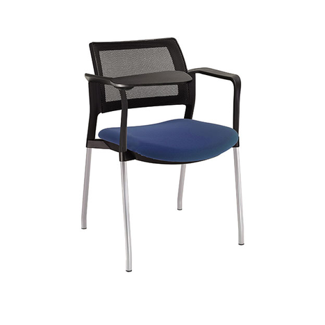 estructura: de acero tubular de 7/8" de diámetro, calibre 14; terminado en cromo, con descansabrazos de polipropileno en color negro y con paleta lateral abatible color negro fijada al brazo mediante un dispositivo. respaldo: en malla diseño ergonómico.