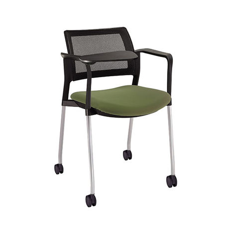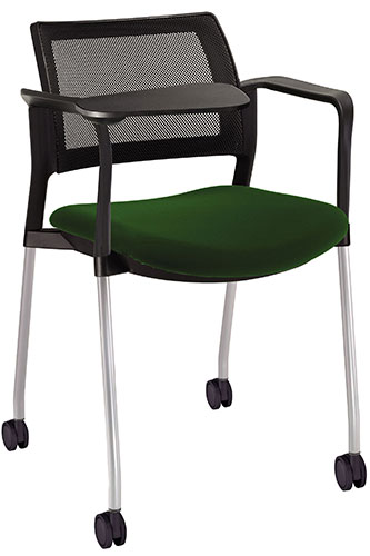 estructura: acero tubular de 7/8 "de diámetro, calibre 14; color gris, con rodajas giratorias tipo dual en color negro, con descansabrazos de polipropileno en color negro y con paleta lateral abatible en color negro fijada al brazo mediante un dispositivo. respaldo: en malla diseño ergonómico. asiento: hule espuma de poliuretano inyectado flexible con densidad de 60 kgs / m3 con retardante a la flama y alta resilencia. tapiz: respaldo en malla color negro y asiento en tela o vinilo al color de su elección de Nuestro catálogo, las tapas son en color negro.