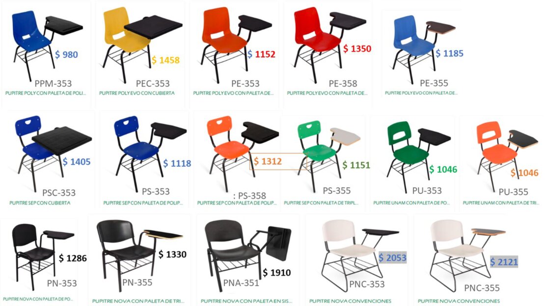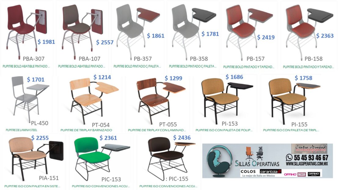 $ 1046 PUPITRE UNAM CON PALETA DE POLIPROPILENO