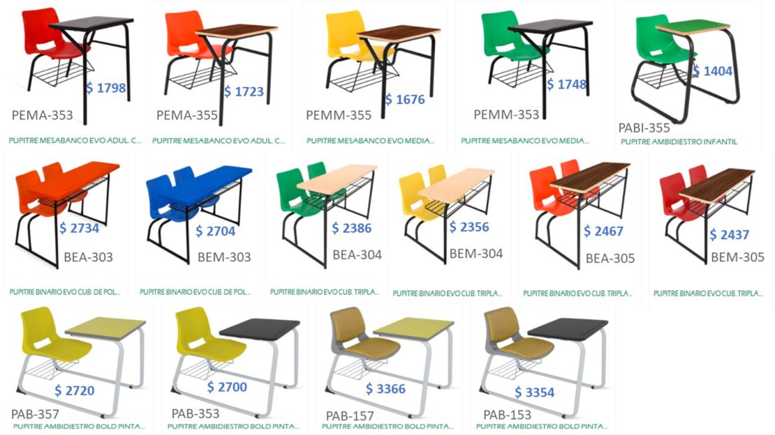 $ 1185 PUPITRE POLY EVO CON PALETA DE TRIPLAY CON LAMINADO PLASTICO