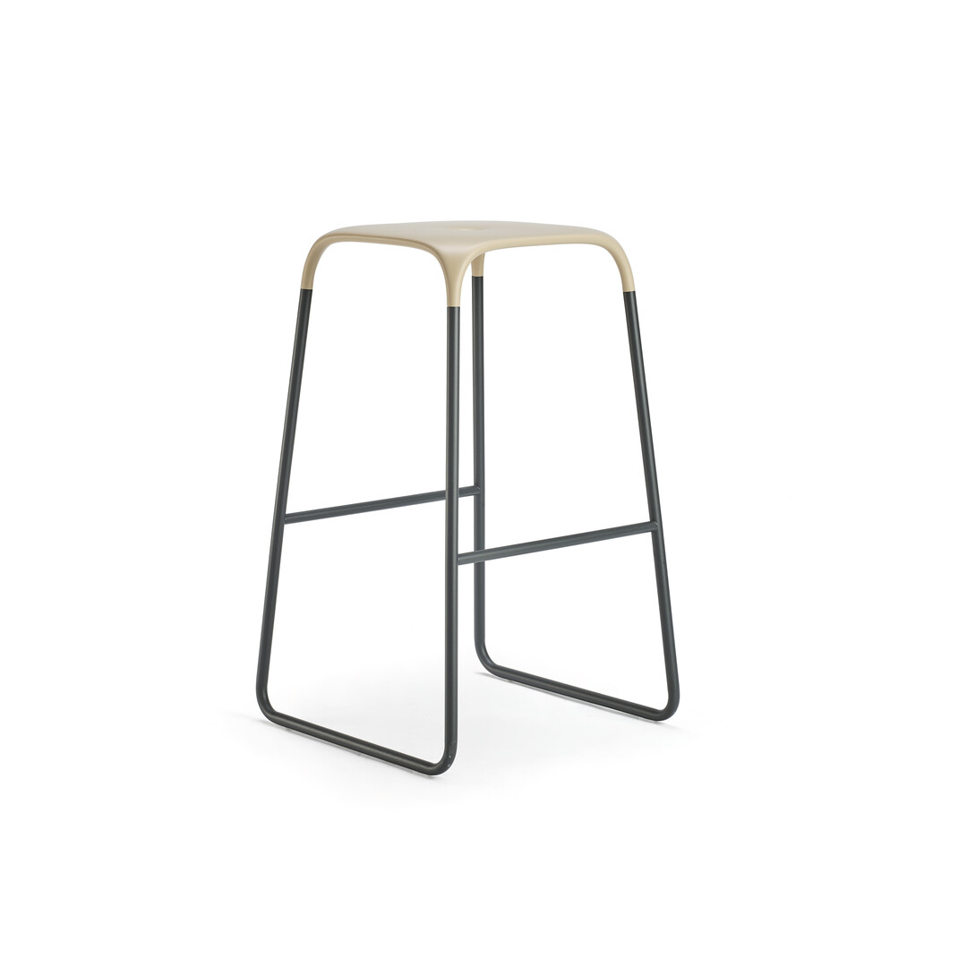 SPLIT 3 es un taburete de diseño moderno y minimalista. El producto es una variante del modelo Split 1, disponible en dos alturas: 75 y 65 cm. En comparación con la silla, el casco original se ha reducido de tamaño, para resultar más proporcionado y cómodo con respecto a la nueva altura.