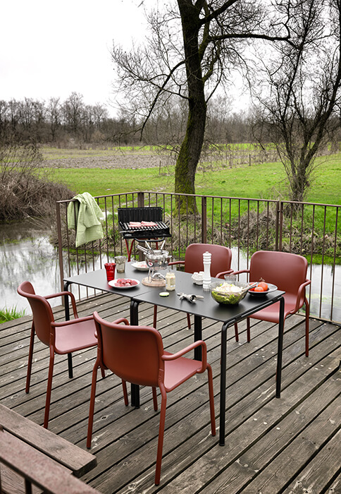Villa-Gran 1 es apilable hasta 6 unidades y también se puede utilizar como silla de jardín, para balcones, terrazas y eventos al aire libre.