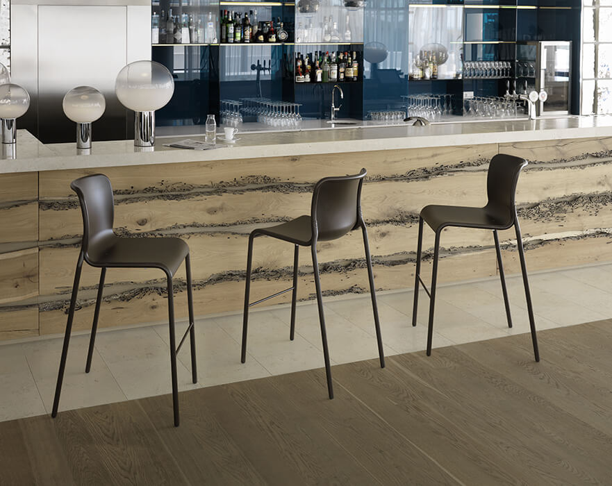 El estilo vintage pero minimalista también es adecuado para contextos modernos, en las aplicaciones más variadas: el taburete alto se puede utilizar fácilmente en bares y pubs, así como en las viviendas, como asiento para cocinas con isla o barra de desayunos.