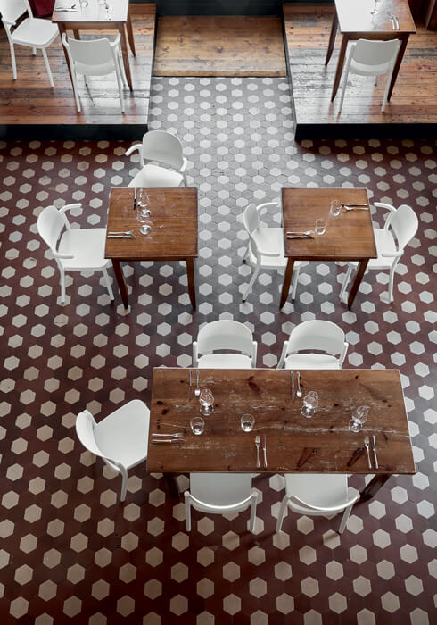La versión rectangular de las mesas Alfiere fue creada específicamente para ambientes de bistró, donde la profundidad del sobre debe ser mayor que el ancho, para optimizar el espacio y, al mismo tiempo, garantizar el grado de comodidad adecuado.