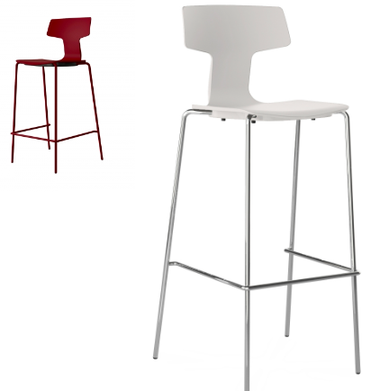 Bobo es un taburete compuesto por un asiento de polipropileno reforzado con fibra de vidrio y una estructura de acero, que puede estar cromada o pintada en relieve del mismo color del asiento. Está disponible en altura de cocina y de barra para adaptarse a todas las necesidades.