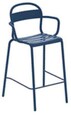 Disponible en cinco acabados, el asiento de acero también se puede elegir en la versión con brazos (Villa 2) o como taburete (Villa 3A).