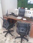 Silla Operativa con respaldo de malla y asiento de tela Microespacia, Sube , Baja y se Reclina,Estrella y rodajas negrasl