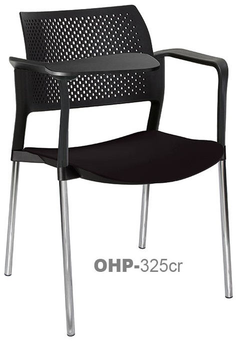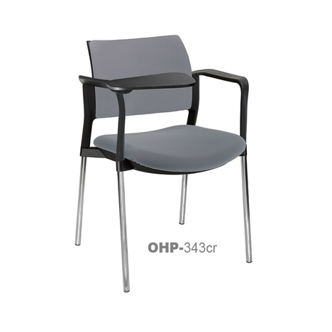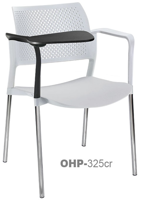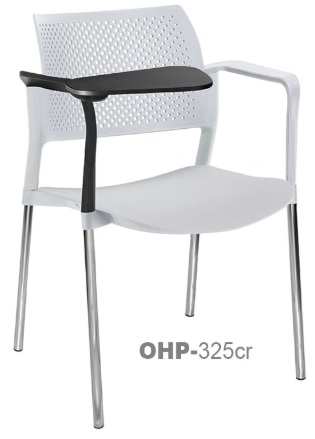 estructura: de acero tubular de 7/8" de diámetro, calibre 14; terminado en cromo, con descansabrazos de polipropileno en color negro y con paleta lateral abatible color negro fijada al brazo mediante un dispositivo. respaldo: en polipropileno de alta densidad y alta resilencia.