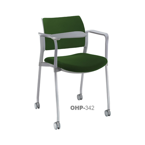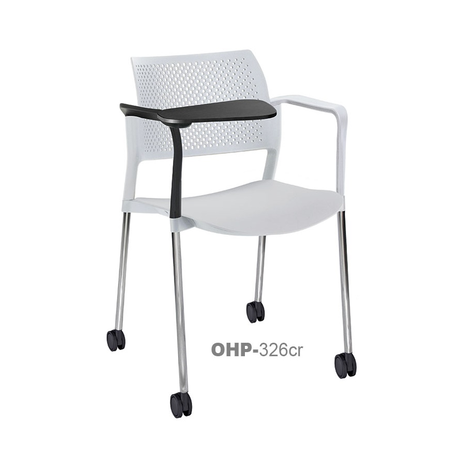 estructura: de acero tubular de 7/8" de diámetro, calibre 14; color gris, con rodajas giratorias tipo dual en color negro, con descansabrazos de polipropileno en color negro y con paleta lateral abatible en color negro fijada al brazo mediante un dispositivo. respaldo: en polipropileno de alta densidad y alta resilencia. asiento: hule espuma de poliuretano inyectado flexible con densidad de 60 kgs/m3 con retardante a la flama y alta resilencia.