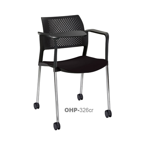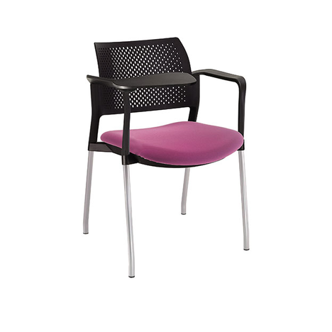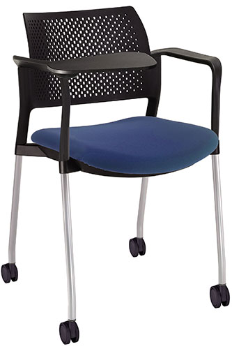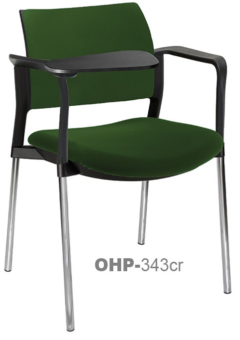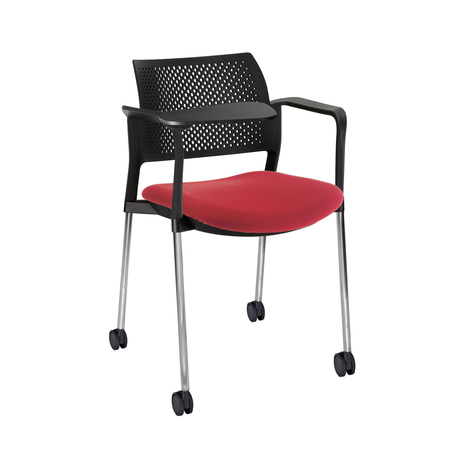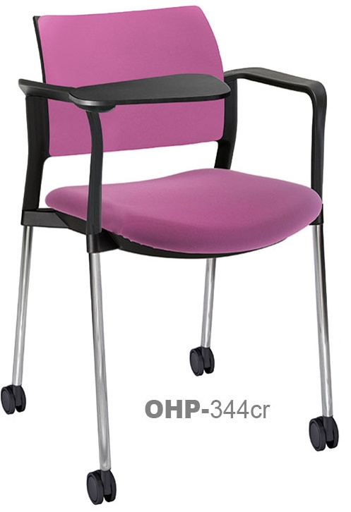 RESPALDO POLIPROPILENO ASIENTO TELA PALETA ABATIBLE 4 PATAS RUEDAS CROMADO COLORES estructura: de acero tubular de 7/8 "de diámetro, calibre 14; terminado en cromo, con rodajas giratorias tipo dual color negro, con descansabrazos de polipropileno en color negro y con paleta lateral color abatible color negro fijada al brazo mediante un dispositivo.