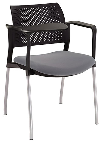 estructura: de acero tubular de 7/8" de diámetro, calibre 14; color gris, con descansabrazos de polipropileno en color negro y con paleta lateral abatible en color negro fijada al brazo mediante un dispositivo. respaldo: en polipropileno de alta densidad y alta resilencia.