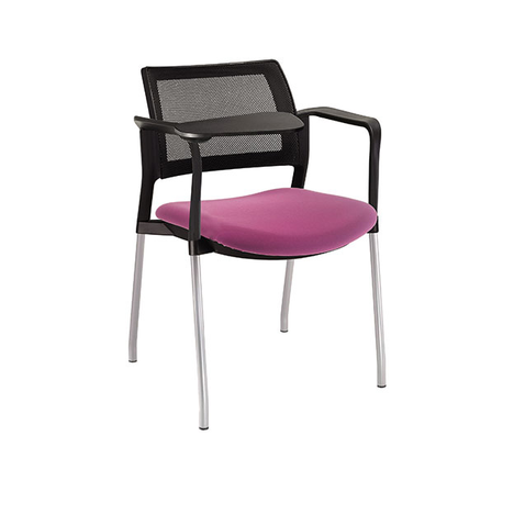 estructura: de acero tubular de 7/8" de diámetro, calibre 14; terminado en cromo, con descansabrazos de polipropileno en color negro y con paleta lateral abatible color negro fijada al brazo mediante un dispositivo. respaldo: en malla diseño ergonómico.
