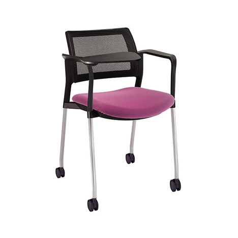 estructura: acero tubular de 7/8 "de diámetro, calibre 14; color gris, con rodajas giratorias tipo dual en color negro, con descansabrazos de polipropileno en color negro y con paleta lateral abatible en color negro fijada al brazo mediante un dispositivo. respaldo: en malla diseño ergonómico. asiento: hule espuma de poliuretano inyectado flexible con densidad de 60 kgs / m3 con retardante a la flama y alta resilencia. tapiz: respaldo en malla color negro y asiento en tela o vinilo al color de su elección de Nuestro catálogo, las tapas son en color negro.